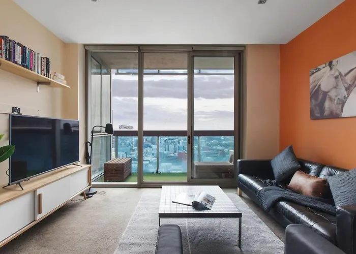 Cet appartement Modern Escape With Balcony & Sweeping City Views Ville de Ville de Melbourne de 71 m² est situé dans le quartier Collins Street, à seulement 6 minutes de marche du Parlement. Vous pourrez profiter d'un parking privé gratuit proposé sur place.